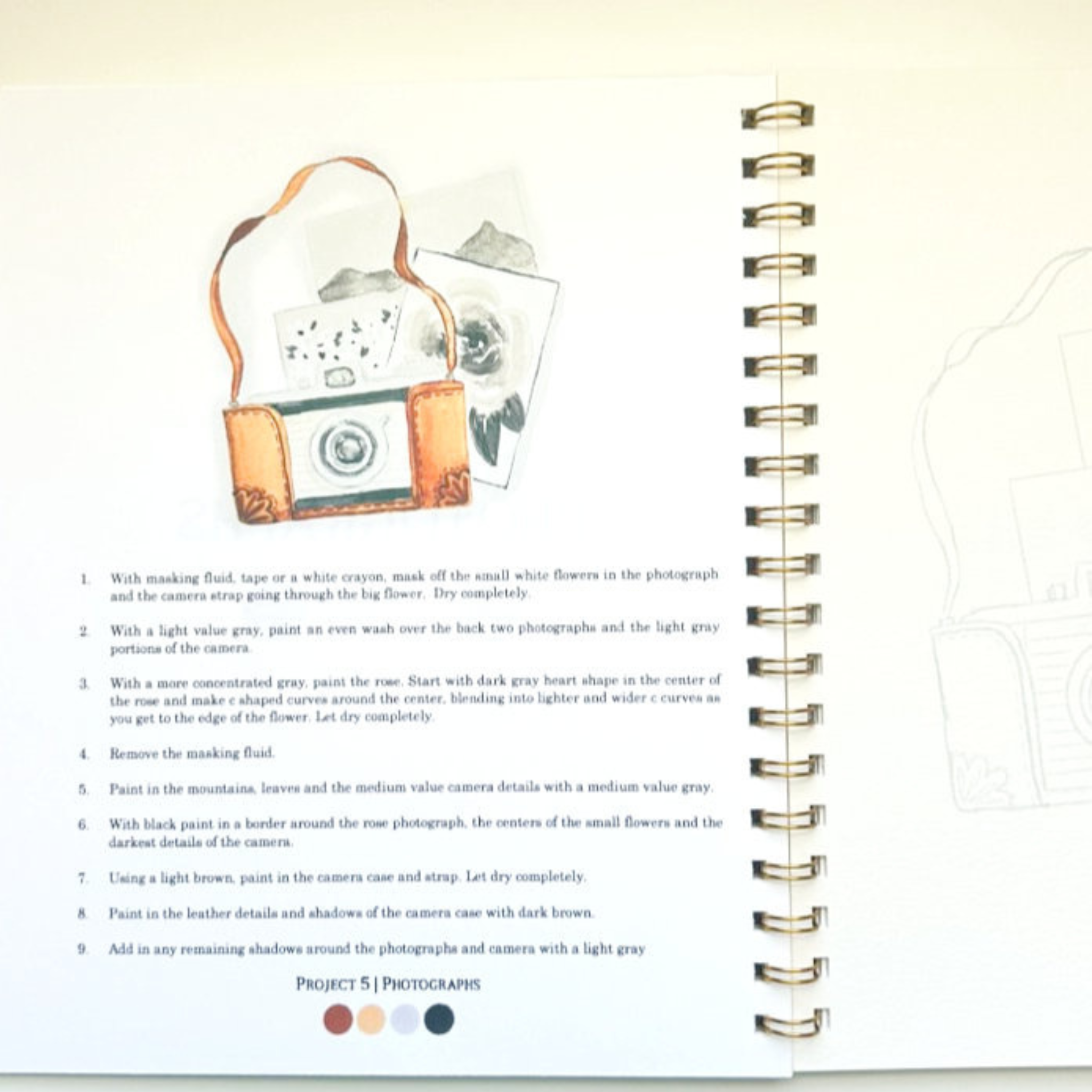 - 10 beginner friendly watercolor projects with a lightly sketched outline.